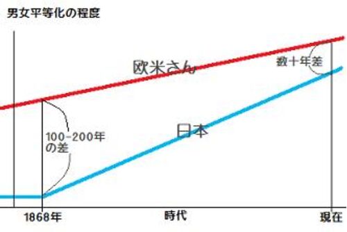 日本で男女平等がなかなか実現しない、欧米並みに改善されないと言う嘆きに対し「欧米と日本では歴史が全く違うから仕方がない」という声を聞く事があります。ここで言う「歴史の相違」が何を指しているか明らかではありませんが、何となく「民主主義の蓄積の差」…